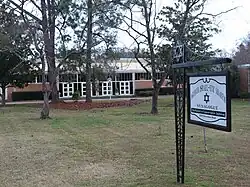 Over the next few years the congregation grew, and moved to a number of rented locations, including "rented office space above the National Shirt Company on Court Square and an annex of the First National Bank".[5] By 1907, the synagogue had 30 members,[18] and an annual revenue of $500 (today $16,900); that year Temple Beth Or had 188 members and revenues of $9,500 (today $321,000).[19] Reflecting the membership's "growing assimilation", in 1914 Agudath Israel re-wrote its constitution in English.[16] That same year the congregation dedicated its first permanent building, on Monroe Street, and hired its first full-time rabbi.[5] The State of Alabama purchased the building on Monroe in 1927, and the congregation built a new synagogue on land at McDonough and High Street,[5] a handsome, brick Rundbogenstil building, notable for its hexagonal shape,[20] which they dedicated in 1928.[15] At the time Agudath Israel had 65 member families.[5]