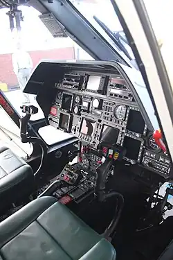 According to AgustaWestland, the AW109 Power features various advanced avionics systems, these include a three-axis autopilot, an auto-coupled Instrument Landing System, integrated GPS, a Moving Map Display, weather radar, and a Traffic Alerting System.[18] These systems are designed to reduce pilot workload (the AW109 can be flown under single or dual-pilot instrument flight rules (IFR)) and enable the use of night vision goggles (NVG) to conduct day-or-night operations.[19] The AW109 has a forced trim system which can be readily and selectively activated by the controlling pilot using triggers located on the cyclic and collective which hold the control inputs at the last set position if activated.[3][16] All critical systems are deliberately redundant for fail-safe operations; the hydraulic system, hydraulic actuators, and electrical system are all dual-redundant, while the power inverters are triple-redundant.[8] The AW109 also has reduced maintenance requirements due to an emphasis on reliability across the range of components used.[19]