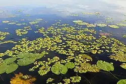 As expected from an environment dominated by swamps and rivers, the Golden Valley Formation has produced a plethora of fossils belonging to aquatic and semi-aquatic animals. Fish are represented in part by bowfins and gars and amphibians by frogs and salamanders (including the genera Batrachosauroides and Chrysoriton). A number of freshwater turtles are also known, including Baptemys, Echmatemys and Plastomenus, as well as softshell turtles of the genus Trionyx.[1]