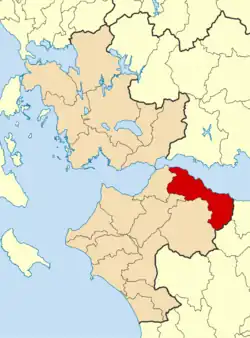 Aigialeia (Greek: Αιγιάλεια, pronounced [eˈʝalia]) is a municipality and a former province (επαρχία) in the eastern part of the Achaea regional unit, Greece. The seat of the municipality is the town Aigio.[2] The municipality has an area of 723.063 km2.[3] The main towns are Aigio, Akrata and Diakopto. The municipality Aigialeia stretches from the south coast of the Gulf of Corinth to the mountainous interior of the Peloponnese peninsula. The main rivers of the municipality are the Selinountas and the Vouraikos.