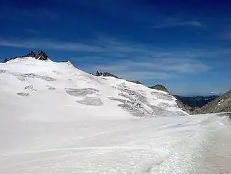 The Aiguille du Pissoir (3,440 m) and the Aiguille Purtscheller (3,475 m) are secondary summits located respectively north and south of the Aiguille du Tour.