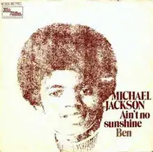 "Ain't No Sunshine" is a song by the American singer and songwriter Bill Withers, from his 1971 debut album Just As I Am. The track was produced by Booker T. Jones, and it also featured the musicians Donald "Duck" Dunn on bass guitar, Al Jackson Jr. on drums and Stephen Stills on guitar.[2] The song's strings were arranged by Jones. The song was recorded in Los Angeles, with overdubs in Memphis by the track's engineer Terry Manning.