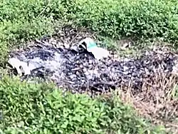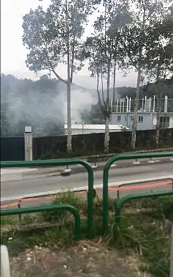 Hill fire (or wildfire) is a main source of air pollution.[11] According to the Agriculture, Fisheries and Conservation Department (AFCD), major causes of hill fires include joss paper and sticks not extinguished after grace sweepers’ worship activities, outdoor barbecuing or cooking, and burning of vegetation and rubbish. “The countryside is therefore prone to high fire risk. Although fires occur in natural environments, almost all are caused by human negligence.”[45] To prevent hill fire, the AFCD suggested that weeds around the grave should be cleared by hand-tools, joss paper and sticks should only be burnt in containers, and “never burn rubbish, weeds or grasses”.[45]