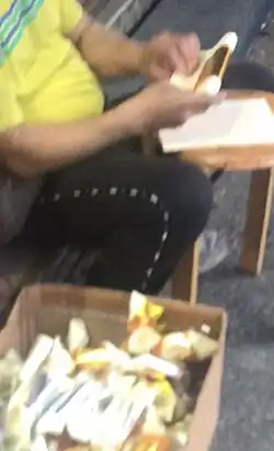 People burn joss paper during many occasions, e.g., Lunar New Year, Ghost Festival, Mid-Autumn Festival, Dongzhi (Winter solstice), Qingming Festival, Chongyang Festival, Dragon Boat Festival,[64] Hanyi Festival,[65] Tin Hau Festival,[66] etc. It is a common practice in public housing estates.[67][68] In around 2003 the housing authority began to place burning containers in designated open spaces of all public housing estates during festivals for people to burn joss paper, in an attempt to “prevent nuisance” results from tenants burning joss paper and incense outside their flats (e.g., in corridors, stairs, etc.),[67][69] although such practice by premises operators is now discouraged by the EPD. Other types of worshiping activities suggested by the EPD includes “offering flower and fruit, electronic offering, electronic worshipping, lucky ribbon etc.”.[57]
