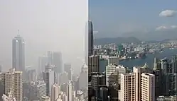 Air pollution in Hong Kong is considered a serious problem. It becomes a concern soon after the start of 2000s. Cases of asthma and bronchial infections have soared due to reduced air quality.[1]