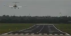 Until 2020, there were also regular shuttle flights to Bristol Airport (Lulsgate) and then on to Toulouse for Airbus workers. These were previously operated by Eastern Airways & the now defunct Flybmi, but were operated by Loganair using an Embraer 145 aircraft until the termination of the service due to the COVID-19 Pandemic, leading to the closure of the Loganair base at Hawarden.[10] The airport is also used as a back-up for scheduled flights to Anglesey whenever Anglesey Airport is closed.[11]