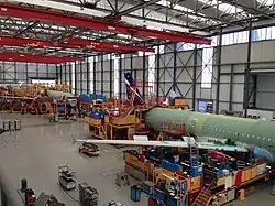 An Airbus A321 on final assembly line 3 in the Airbus Hamburg-Finkenwerder plant.
