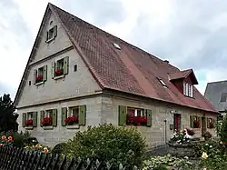 Two-storey byre-dwellings with stone walled ground floors occurred in the northeast of Baden-Württemberg in the 15th century. They were described as Pastor Mayer houses (Pfarrer-Mayer-Häuser).[3]