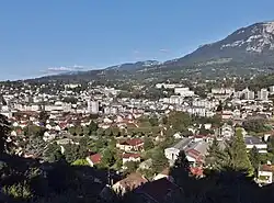 Situated on the shore of the largest natural lake of glacial origin in France, the Lac du Bourget, this resort is a major spa town; it has the largest freshwater marina in France.[5] It is the second largest city in the Savoie department in terms of population, with a population of 32,175 as of 2022. It is part of the Chambéry functional urban area.[4]