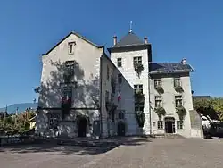 At the end of the 12th century, the cartulary of Saint Hugues reveals the existence of two other parishes, Saint-Simond with its church and that of Saint-Hippolyte (in the current area of Mouxy) also with a small priory. Urban geography begins to clarify: One can imagine the small town, contained in its walls, which nobody knew when was built. The central point of the town is the priory, near the ancient Roman temple. This centre could also have been the administrative centre since at least the 13th century. Aix was a seigneurie subservient to the de Seyssel family, who had a château which, even if we do not place with certainty, was probably the location of the actual château.[34] Two hamlets are attested, Saint-Hippolyte, in the immediate vicinity of the town but outside the ramparts, with a small priory at the centre and at its side, now under the Villa Chevalley, a strong House, the maison forte de Saint-Pol [strong House of Saint-Pol], dependent upon the de Savoie family[34] which recent studies date back to the 13th century. A second important village appears, Saint Simond (Saint Sigismond) with it having a church and a cemetery, established as a parish, and a dependent of Saint-Hippolyte.