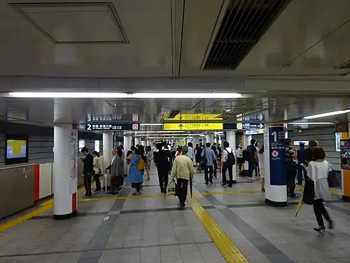 The station facilities were inherited by Tokyo Metro after the privatization of the Teito Rapid Transit Authority (TRTA) in 2004.[2]