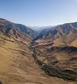 The Aksu (Kazakh: Ақсу, Aqsu; Russian: Аксу) is a river of the Balkhash-Alakol Basin, Kazakhstan. It originates in the Dzungarian Alatau Mountains near the border with China and flows into Lake Balkhash.[1] In Turkic languages, the name 'ak+su' literally means "clean/white water". The Aksu is one of the main rivers of the historic region of Zhetysu. It is 316 kilometres (196 mi) long, and has a drainage basin of 5,040 square kilometres (1,950 sq mi).[2]
