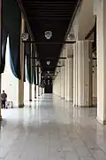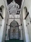 Remnants of the original decorations, including stucco carvings, timber tie-beams, and Quranic inscriptions were preserved, but most of the mosque's present interior dates from this reconstruction.[3][5][13] Among other things, the restoration introduced a new marble mihrab whose motifs imitated the appearance of the Fatimid-era stucco mihrab in the al-Azhar Mosque.[5] It also involved the demolition of the Mamluk-era tomb of Qurqumas, which stood right in front of the mosque and which was subsequently relocated to the Northern Cemetery.[14]
