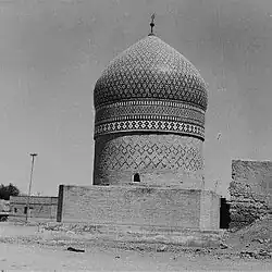 In 1602, a descendent of Sheikh Sari, Sheikh Abd al-Salam II al-Abbasi, built the current dome of the mosque and a minaret. The mosque is in the sledge and is considered one of the rare minarets built in Islamic architecture and design at that time in Basra.[1] The dome was erected on top of the tomb of Sheikh al-Kawaz and was decorated in multi-colored Faience which was very popular with architecture at the time.[4] In the 18th century, the minaret of al-Kawaz Mosque was the highest point in all of Basra.[5] The mosque contains two tombs. One is the tomb of one of the sons of Musa al-Kazim, and the other is the circular tomb of Sheikh Muhammad Amin al-Kawaz, the mystic Sufi leader of Shadhili order in Basra whom the mosque is named after.[5]