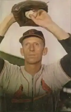 Alpha Eugene Brazle (October 19, 1913 – October 24, 1973) was a Major League Baseball pitcher. The left-hander was signed by the Boston Red Sox as an amateur free agent in 1936, and later traded to the St. Louis Cardinals for pitcher Mike Ryba in September, 1940. He played his entire MLB career for the Cards (1943, 1946–1954). In 1954, at the age of 40, he was the oldest player to appear in a National League game that season.