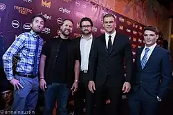 Ritchson portrayed Gloss, a tribute in the 75th Hunger Games, in The Hunger Games: Catching Fire (2013). Ritchson also portrayed Raphael in Teenage Mutant Ninja Turtles, a reboot to the Teenage Mutant Ninja Turtles film series after the four previous films.[31][32] Ritchson would later criticize producers of the new TMNT live-action films, claiming they mistreated him and other actors portraying the turtles during and after filming.[33] He returned to the role of Thad Castle in the Blue Mountain State movie, Blue Mountain State: The Rise of Thadland. Ritchson co-starred in Rooster Teeth Production's first feature-length movie—the science fiction comedy Lazer Team in January 2016.[34] He also played a medium role in The Wedding Ringer.