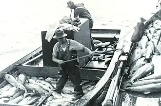 The APA was formed in 1891 when the Alaska salmon industry was in its infancy but already produced more canned salmon than the market could bear.[1] The association was initially formed to sell off the surplus pack and it proved so successful that it incorporated in 1892 as the Alaska Packing Association to better manage canned salmon production to meet demand. Of the original 31 member canneries across Alaska, 9 were idled that year. With minor changes, the association reincorporated as the Alaska Packers Association in 1893.[2]