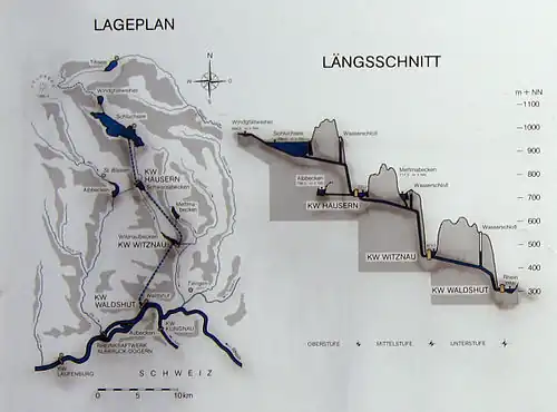 The Schluchseewerk is the company that runs the hydropower stations around the Schluchsee. In their network, the Alb Reservoir and its sister, the Mettma Reservoir in the valley of the Mettma, are one of two side arms linking the Schwarzabruck Reservoir (lower basin for the power station on the upper level (Oberstufe) and upper basin for the power station on the middle level (Mittelstufe) in the Schwarza valley.