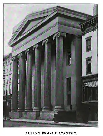 Albany Academy for Girls is an independent college-preparatory day school for girls in Albany, New York, United States, enrolling students from preschool (age 3) to grade 12. Founded in 1814 by Ebenezer Foote as the Albany Female Academy, AAG is the oldest independent girls day school in the United States.[1] It is located on the corners of Hackett Boulevard and Academy Road, across the street from its brother school The Albany Academy.