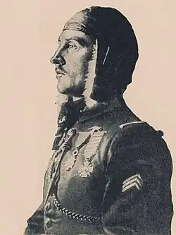 Auger volunteered to join the 11ème régiment d'infanterie on 24 October 1907 as a reservist, and on the outbreak of World War I he was mobilized into the 31ème régiment d'infanterie.[4] He was wounded in action on 31 August 1914,[5] and was made a Chevalier of the Légion d'honneur on 8 November.[4] He transferred to flying service on 25 January 1915, receiving military pilot's certificate No. 928 at the military flying school at Pau on 11 May 1915. He was posted to Escadrille 11 on 11 May 1915,[4] only to be wounded again on 8 July.[5] On 22 September 1915, he took command of Escadrille 31,[5] and was promoted to capitaine on 26 December 1915.[4] He scored twice in this assignment, on 13 March and 2 April 1916. Auger was seriously injured in a crash on 16 April. He recovered, and flew with Escadrille 3 to score again on 9 February 1917. A week later, he was wounded yet again, in a dogfight with four Germans.[5] A month later, on 17 March 1917, Auger took command of Escadrille 3. He scored four more times, including a win shared with Joseph M. X. de Sévin, with his last being 28 June 1917.[2] Auger then upgraded to a SPAD. On 28 July, he took his SPAD into a dogfight with five German aircraft, and was shot in the neck. Bleeding profusely, he somehow still managed to land behind friendly lines, but bled to death within a few minutes.[5] Jasta 8 seems to have been his opponent. Its commanding officer, Gustav Stenzel, was killed in this fight,[2] with no one claiming him. Rudolf Francke of Jasta 8 posted a claim that went unconfirmed, but was probably Auger.[5]