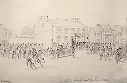 Albert Berghaus (fl. 1869โ1880) was an important American illustrator from the period immediately prior to the Civil War up to about the 1880s/1890s. He worked for Frank Leslie's Weekly, also known as Frank Leslie's Illustrated Newspaper, producing sketches and wood engravings of important events in contemporary American history. After the Civil War, he traveled in the west, and in the late 1870s he collaborated with Frederic Remington to illustrate "Tenting on the Plains," an account, possibly a magazine article, by Mrs. George Custer.