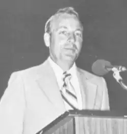 Brewer supported Wallace's 1968 presidential campaign, soliciting donations and delivering speeches on his behalf.[31] Within months of Brewer assuming office, Wallace assured him privately and stated publicly that he would not seek the governor's office in 1970.[44] Around the Thanksgiving holiday in 1968, Wallace confronted Brewer about the alcohol agents scandal, and told Brewer in a meeting at the governor's mansion, "If you keep talking about it, it's going to reflect on me and I may just have to run against you in 1970."[45] Brewer countered, "[Y]ou never have had a better friend than I've been to you and [your wife], and you told me [so] yourself when she died."[45] The two spoke infrequently after the meeting, and Brewer continued with his preparations to be elected as governor in his own right in 1970, and, mindful of the possibility of another Wallace candidacy, took increasingly bolder policy positions and actions.[46]