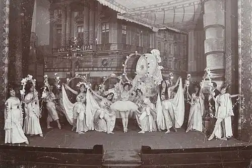 Immediately upon their accession to the directorship of the Théâtre de la Monnaie, on 1 June 1900, Maurice Kufferath and Guillaume Guidé appointed Dubosq the Monnaie's second peintre-décorateur attitré, next to Devis and Lynen. Dubosq's first contribution to the Monnaie was the “Quartier Latin” set for Giacomo Puccini’s La (vie de) bohème, Act II. Premiered on 25 October 1900 under the supervision of the composer and publisher Tito Ricordi, this production enjoyed thirty performances in its first run alone and would keep the stage until 1949. Significantly, Puccini and Riccordi were so enthralled by Dubosq’s effort that they had it photographed and incorporated in Riccardo Salvadori’s new design for Act II of Puccini’s masterpiece.[3]