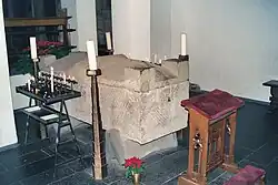 After suffering declining health in 1278, he died on 15 November 1280 in the Dominican convent in Cologne, Germany. His relics are located in a Roman sarcophagus in the crypt of the Dominican St. Andrew's Church in Cologne.[17] His body was claimed to be incorrupt during an exhumation three years after his death. However, a later exhumation in 1483 found that only a skeleton remained.[18]