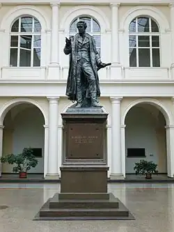 The Germans paid due homage to this great man while living, and have not overlooked, as to posthumous honors, him who had rendered such great services to his country and to humanity in general. His statue stands among those of all the great men of Germany.[2]