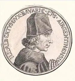 Albert of Palatinate-Mosbach or Albert of Bavaria (German: Albrecht von Pfalz-Mosbach or Albrecht von Bayern) (6 September 1440 – 20 August 1506 in Saverne) was a Roman Catholic clergyman who was bishop of Strasbourg from 1478 to 1506.