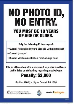 Western Australian alcohol laws only allow the following identification as legally accepted proof of age in licensed premises:[27][28][29]