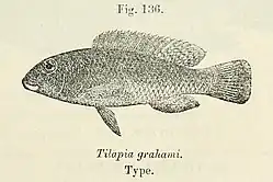 Alcolapia grahami, the Lake Magadi tilapia or Graham's cichlid, is a vulnerable species of fish in the family Cichlidae. It is specialised to live in hot, alkaline waters in springs and lagoons around hypersaline lakes.