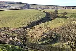 The Alden Valley is a small valley on the eastern edge of the West Pennine Moors, west of Helmshore in Rossendale, Lancashire, England. In the 14th century it was part of the Earl of Lincoln's hunting park. By 1840 it was home to about twenty farms, largely involved in cattle rearing, although most inhabitants were also involved with the production of textiles, which quickly developed during the Industrial Revolution into the building of textile mills. These have now been demolished and the valley is dominated by sheep grazing, with three working farms and a number of smallholdings.[1]