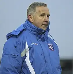 Two months into the 2009–10 season, manager Gary Waddock and assistant Martin Kuhl accepted offers to join Wycombe Wanderers. Kevin Dillon, the former first-team coach of Reading, was appointed as Waddock's permanent successor in November 2009.[8] Under the new management team Aldershot finished the season in sixth place,[9] qualifying them for the play-offs,[10] where they lost 3–0 on aggregate to Rotherham United.[11]