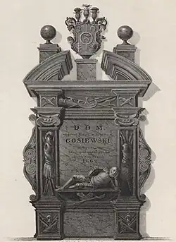 Aleksander Korwin Gosiewski (Lithuanian: Aleksandras Korvinas Gosievskis) de armis Ślepowron (died 1639), was a Polish nobleman, military commander and diplomat, Lithuanian Field-Quartermaster since 1630, Palatine-Governor of Smolensk from 1625, Lithuanian Great-Quartermaster since 1615, Speaker of the Parliament in 1613, Great-Secretary of the Grand Duchy of Lithuania from 1610 and District-Governor of Wieliż, Puńsk, Kupise, Biel, and Markowa.