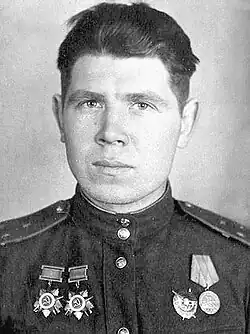 1. ^ Bykov, Mikhail (2014). Все асы Сталина. 1936–1953 [Aces of Stalin. 1936–1953]. Moscow: Yauza. p. 609. ISBN 978-5-9955-0712-3. OCLC 879321002.