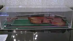 The exhibition includes one of the violins that belonged to the academician (as a child he studied at the private music school of the conductor and composer Aleksandr Orlov-Sokolovsky),[36] and a Polish grand piano J. Kerntopf & Fils (on which Arbuzov was accompanied at family concerts by the academician's granddaughter Marina, who became a music teacher).[55][64][65] Aleksandr Arbuzov owned several violins. He kept his childhood violin as a souvenir. He considered the most valuable in his collection to be a violin by the famous French master Jean Baptiste Vuillaume from the 1850s.[53] Contemporaries also mentioned another violin by Aleksandr Arbuzov, the work of the outstanding Austrian master Jacob Stainer. It was the one that usually stood on top of the grand piano in the living room.[66] Books from his library on the history of the violin, the theory of violin playing and the technology of violin making testify to the seriousness with which the scientist approached his hobby.[67] Arbuzov's archive contains correspondence in which he acts as an expert for the nomination of the Bolshoi Theatre's musical instrument workshop for the USSR State Prize.[67][68] To an interlocutor in a domestic setting, the academician could give an impromptu lecture "on the materials and fine details of the shape of violins necessary for good performance, on the secrets of the art of the old violin masters".[69]