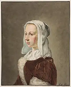 De Frey[1] was born in Amsterdam as the second child of a family of 3 daughters and two sons. The family was Roman Catholic. Jacobus Johannes Lauwers from Bruges became the teacher of Anna and her younger brother Johannes Pieter de Frey, who became a printmaker, painter and publisher.[2] Lauwers lived in their house for a short while and later married the eldest sister Maria Christina. On March 22, 1804, Anna Alida and Gerhard Pootmann had the banns published. She used herself on this occasion the names Anna Aletta. After their marriage (April 4, 1804) they appear to have moved to Mannheim. She can also be referred to as: Anna de Freij, Aletta de Frey, Anna de Frey, Aletta Pootmann-de Fre.