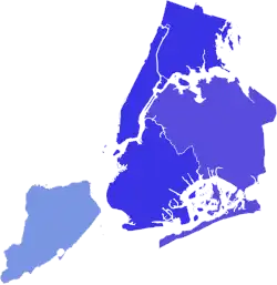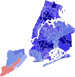 ![]() ![]() de Blasio: 40–50% 50–60% 60–70% 70–80% 80–90% >90% Zablocki: 50–60% | ||||||||||||||||