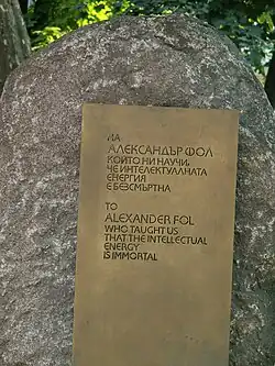 Alexander Fol (Bulgarian: Александър Фол) (born in Sofia, Bulgaria on July 3, 1933; died in Sofia on March 1, 2006) was a Bulgarian historian and Thracologist. In 1957, he studied history at the University of St. Kliment Ohridski in Sofia and earned a PhD in 1966. He worked as a university lecturer from 1972 and became a professor in 1975. From 1980 to 1986, he served as Minister of Culture and Education of Republic of Bulgaria. His research interests lay in classical Greek and Roman history, the cultural history of southeast Europe and Asia Minor, and Indo-European studies. He is best known for his contributions to Thracology.