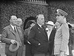 Mair extensively reshuffled his cabinet, announcing the new ministry on 16 August. Among the appointments included Athol Richardson as Colonial Treasurer, Lewis Martin took up Spooner's former roles of Public Works and Local Government and the relatively new Vernon Treatt as Minister for Justice.[14] Faced with a population of 53,000 registered unemployed, on 30 August Mair made plans to combat youth unemployment by providing generous pension schemes for coalminers and introducing compulsory retirement at age 60, thereby halving the unemployment rate. Despite attempts to reassure business speculation over the outbreak of war, on 3 September 1939 the Second World War erupted. At the cabinet meeting the next day, Mair, both of his sons having enlisted, reaffirmed the need to support Britain and the Allies. Mair personally also took on this responsibility by contributing £4000 in war loans. In December, Mair's Government refused to register refugee German doctors and Mair later criticised Prime Minister Robert Menzies for not acting to intern enemy aliens. When Parliament returned in March 1940, the Opposition Leader, William McKell, moved a censure motion on the government, citing its ineffectiveness to act on unemployment and housing. Mair responded by tearing apart their arguments in a one-hour and a half long speech.[17]