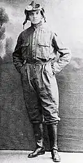 He came from an old noble family. He studied at a classical gymnasium in Yuryev (now, Tallinn). He graduated from the Faculty of Physics and Mathematics of the Imperial University of Dorpat. In November 1908 he was called up for military service. In 1911 he graduated from the flight school of Louis Blériot in France. Since June 1911, he was a pilot leader at the aviation school of the Imperial All-Russian Aero Club. In 1913, he was sent to France for the second time to study at the High School of Aerobatics, from which he graduated in April 1914. Upon returning to Russia, he made many demonstration flights around Russia, including nine «dead loops». One of them, performed at a height of 40 meters, became a world record. He entered the top five «looplists».[1] From August 1914, he supervised the training of pilots at the Sevastopol Military Aviation School (Kacha, Sevastopol).[2]