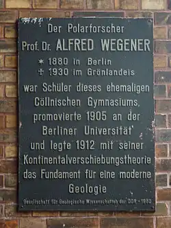 - ^ a b c d Wutzke, Ulrich (2020). "Wegener, Alfred - Deutsche Biographie". www.deutsche-biographie.de (in German). Retrieved 5 February 2024.