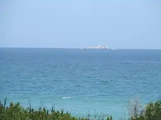 - St. Croix Island at 33°47′58″S 25°46′11″E / 33.79944°S 25.76972°E is 3.9 km (2+3⁄8 mi) from the nearest land and rises to 59 m (194 ft).[7] The BirdLife fact sheet states the 12 ha (30-acre) island is only 58 m (190 ft) above sea level. It adds that the island is rocky and “supports minimal vegetation”. The island runs 700 m (2,300 ft) along a northwest, southeast axis and is about 360 m (1,180 ft) wide at its broadest – along the west coast. Its highest point is halfway along the north coast.