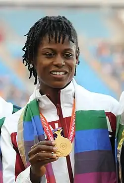 She has won gold medals at the 2003 Pan American Games and the 2010 Commonwealth Games.[1] She also competed at the 2001 World Championships without reaching the final. Falaiye never appeared in the Olympics.