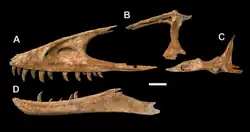- ^ a b Foster, William; Brusatte, Stephen L.; Carr, Thomas D.; Williamson, Thomas E.; Yi, Laiping; Lü, Junchang (2022). "The cranial anatomy of the long-snouted tyrannosaurid dinosaur Qianzhousaurus sinensis from the Upper Cretaceous of China". Journal of Vertebrate Paleontology. 41 (4): e1999251. doi:10.1080/02724634.2021.1999251. hdl:20.500.11820/85571b5c-0e63-4caa-963a-f16a42514319. S2CID 246799243.