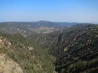 A view of Aliso Canyon and the Pacific Ocean, looking westward. San Clemente and Santa Catalina islands are visible in the distance. | |