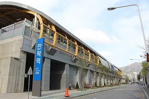 Allak station (Korean: 안락역; Hanja: 安樂驛) is a railway station of the Donghae Line in Allak-dong, Dongnae District, Busan, South Korea.