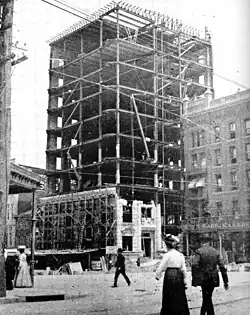 Construction of the building started on August 12, 1903. Its steel framework was finished on May 7, 1904. The steel came from Guerber Engineering of west Bethlehem, and the stonework was done by Carlucci Stone Co. of Scranton. The concrete ceilings were installed by Roebling Construction Co., founded by the same Roebling family that built the Brooklyn Bridge. One worker, Fred Mummey, died in the construction of the eight-story structure; he was knocked from a high steel beam on 4 February 1904, by the boom of a swinging derrick.