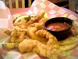 Alligator meat is the meat from alligators that is for consumption.[1][2] In the United States, alligator meat is commonly eaten, where it is regarded as a delicacy and staple in local cuisines both historically and in modern times. Alligator eggs can also be consumed. Alligator meat is high in protein and low in fat, and has a mild flavor and firm texture.